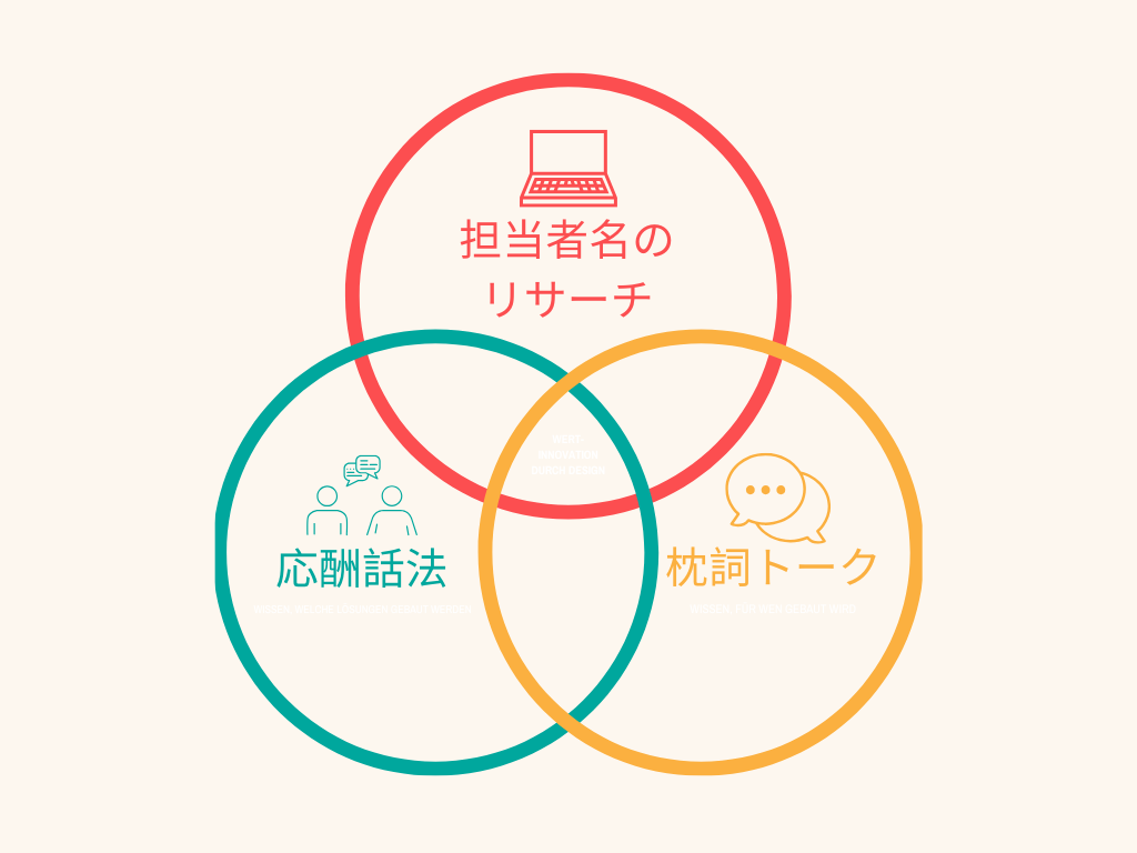 ここからは具体的なテクニックをご紹介します。ただし!、重要な前提ですが「誰でも同じように言えば通じる」魔法の言葉なんて存在しません。営業のテクニックはすべて「自分の型として使えるようになる」ことが重要です。