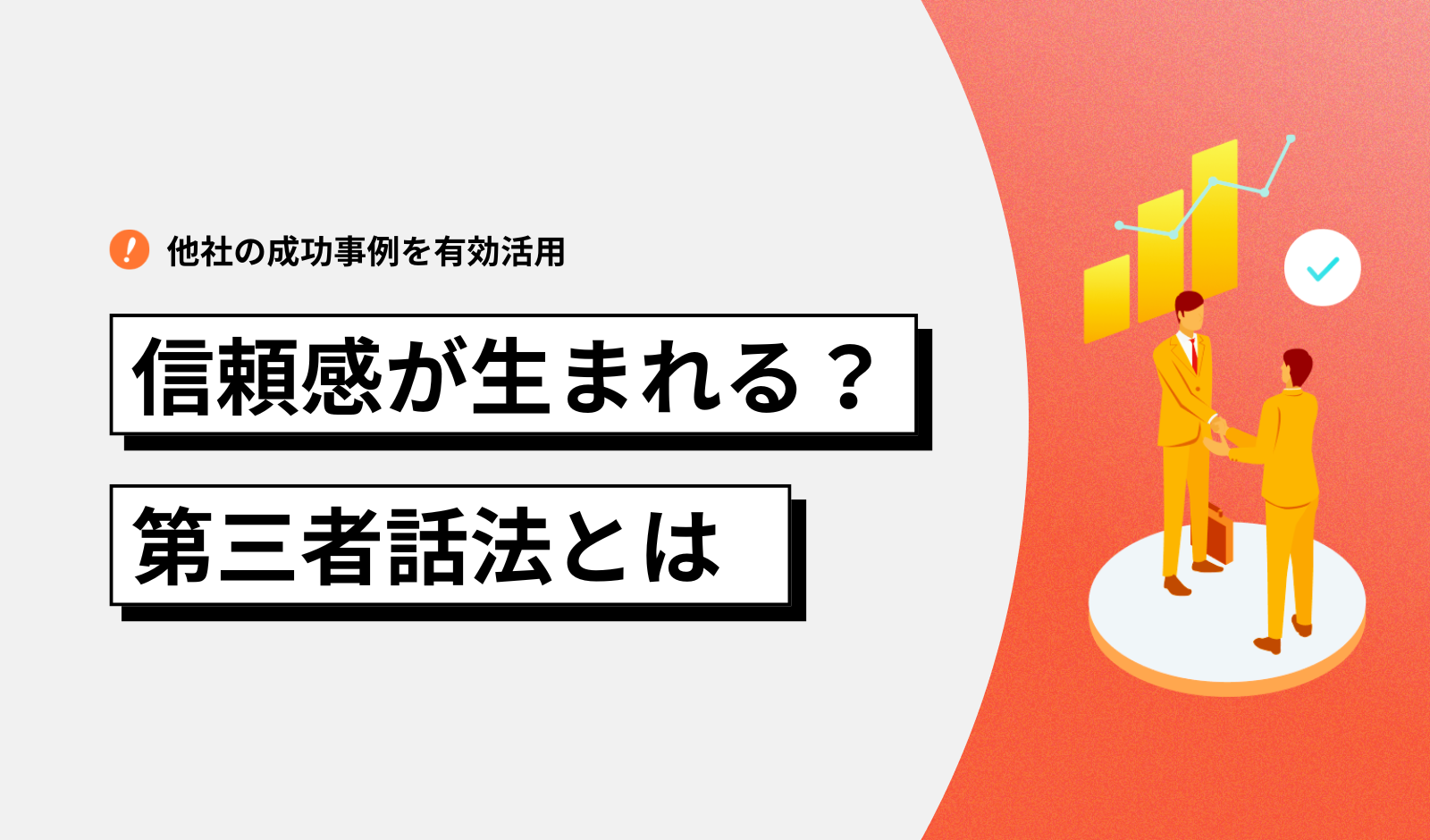第三者話法とは、第三者の成果や事例・意見を述べることで、エピソードに説得力をもたせる手法のことです。営業トーク中に「他の企業様も…」「○○業界でも…」という言い回しをうまく使えると、営業っぽさを抑えつつ相手の共感と納得感を引き出せます。