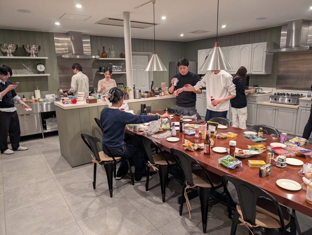 ということで4期締め会発表も無事終わり、みんなで買い出しに行き恒例の一人一品料理を作って食べ飲みする会をしました。