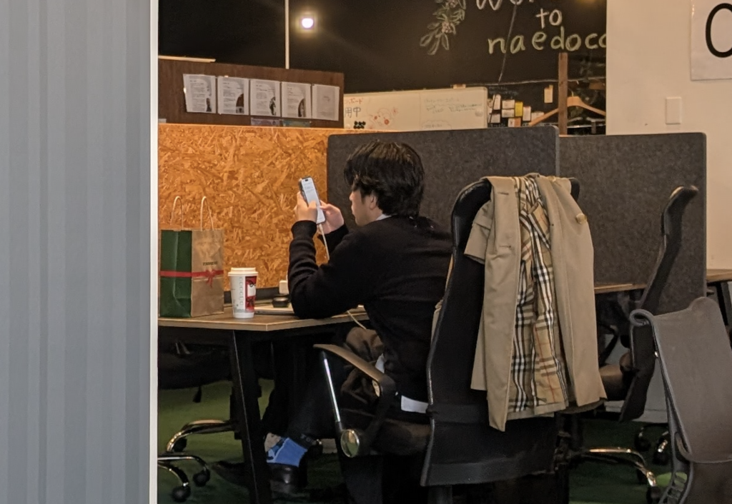 ※後に判明しましたがパソコンの充電器を持ってくることを忘れてパソコン充電がきれてひたすらスマホで仕事しておったとのことです。(TypeCではなくパソコン固有の充電器のため誰も持ち合わせなし。悲劇)